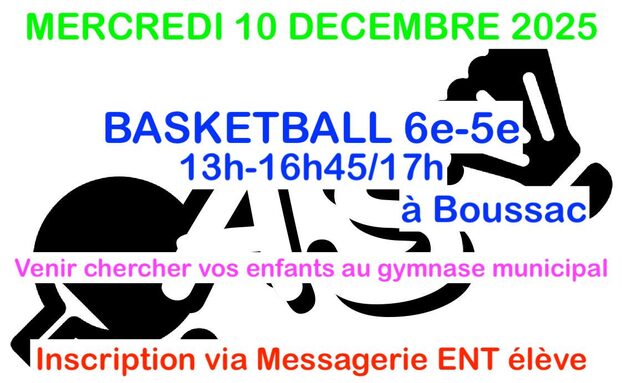AS : MERCREDI 10 DECEMBRE 2025 : BASKETBALL 6e-5e