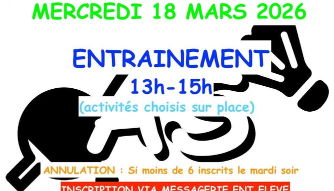 Inscription via le formulaire au plus tard lundi 20h envoyé sur la messagerie ENT de votre enfant licencié.