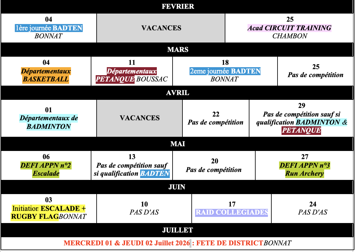 Mise à jour au 02 février 2026 des calendriers de l'AS