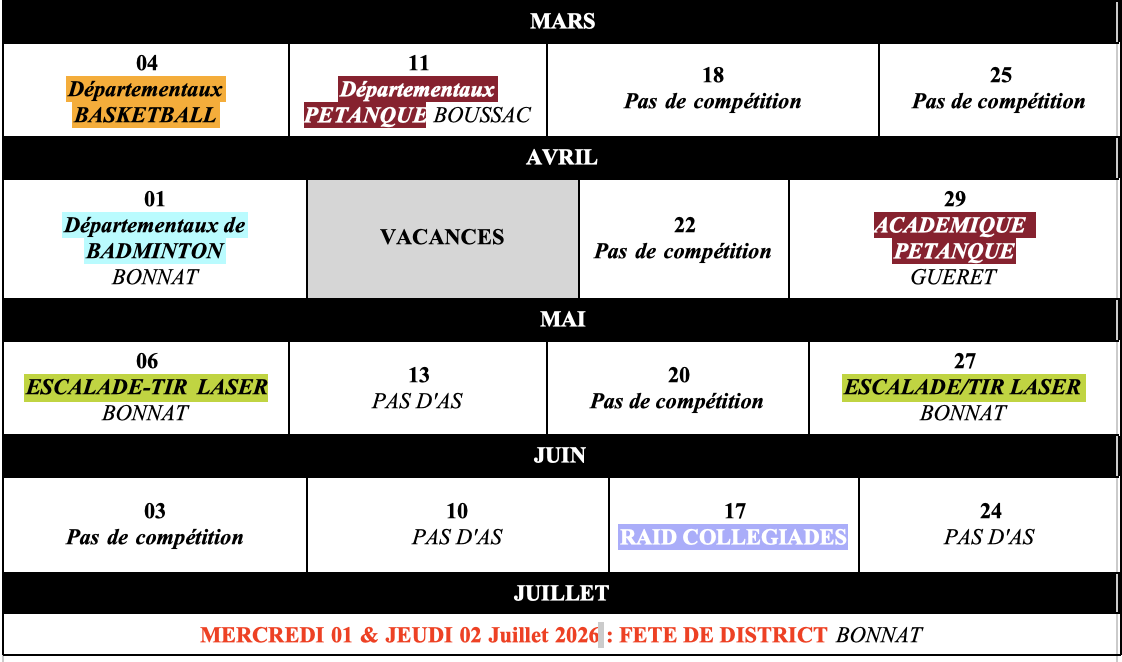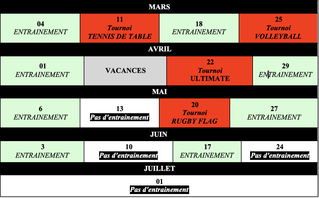 MISE A JOUR DES CALENDRIERS AS : SORTIES, ENTRAINEMENTS & TOURNOIS INTERNES au 13/03/26 calendriers dans l'article.